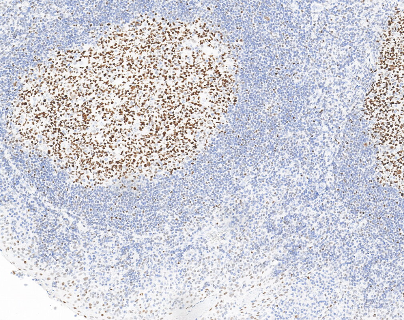 L’anticorps Bcl-6 est principalement utilisé dans le diagnostic différentiel des lymphomes : il marque les cellules du centre germinatif dans le lymphome folliculaire, le lymphome diffus à grandes cellules B et le lymphome de Burkitt, ainsi que la majorité des cellules de Reed-Sternberg dans le lymphome de Hodgkin nodulaire à prédominance lymphocytaire. En revanche, le lymphome du manteau et le lymphome du MALT montrent une coloration négative avec l’anticorps Bcl-6. En outre, environ 45 % des lymphomes anaplasiques à grandes cellules CD30+ expriment Bcl-6, tandis que les autres lymphomes T périphériques ne l’expriment pas.