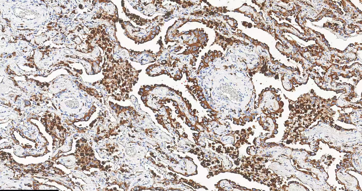 Dans les tissus normaux, elle est exprimée dans les pneumocytes de type II et les tubules proximaux rénaux.